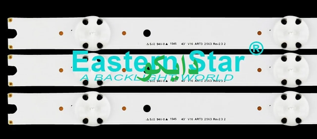 بک لایت تلویزیون ال جی 43lh604v - 43lh دارای 3 ردیف است که هر ردیف 9 لامپ ال ای دی دارد. ولتاژ هر لامپ ال ای دی 3 ولت و طول آن 84 سانتی متر است .