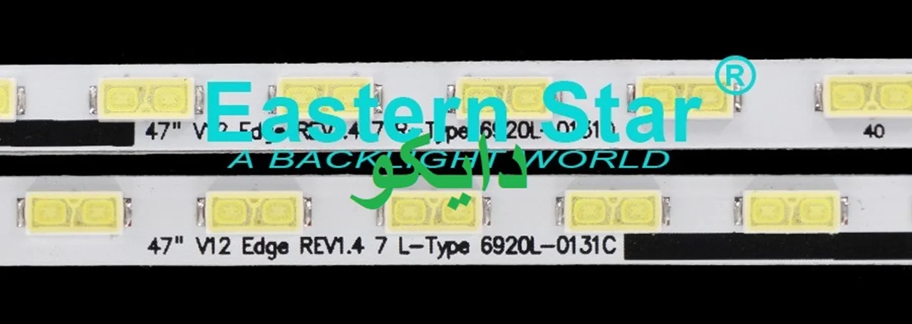 بک لایت تلویزیون ال جی 47lm62000 - 47lm58000 - 47lm46000 - 47lm6200 - 47lm5800 - 47lm4600 - 47lm620 - 47ls46000 دارای 1 ردیف یا 2 شاخه است که هر خط 48 لامپ ال ای دی دارد . ولتاژ هر لامپ ال ای دی 6 ولت و طول آن 118.8 = 59.4 * 2 سانتی متر است .