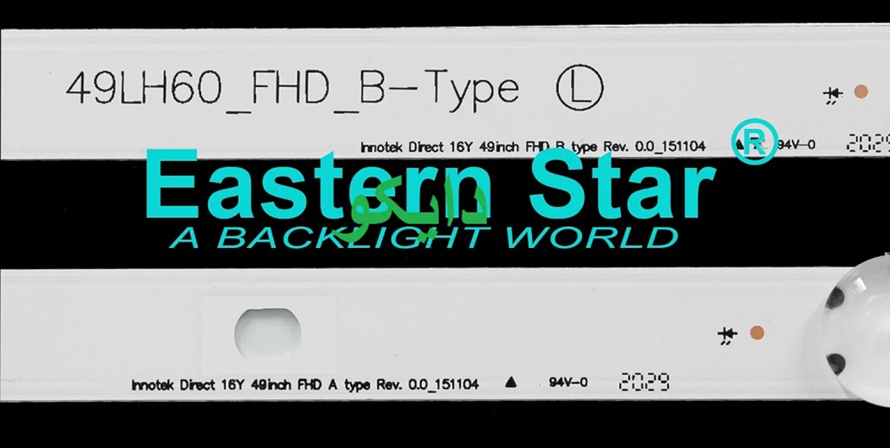 بک لایت تلویزیون ال جی 49lh604v - 49lh60200 - 49lh604 دارای 4 ردیف یا 8 شاخه است که هر شاخه 4 و 3 لامپ ال ای دی دارد . ولتاژ هر لامپ ال ای دی 3 ولت و طول آن 100 سانتی متر است .