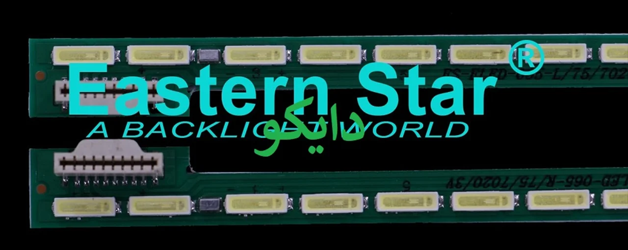 بک لایت تلویزیون ال جی 55la66000 - 55la6600 - 55la66100 - 55la74000 - 55la7400 دارای 2 ردیف است که هر خط 75 لامپ ال ای دی دارد . ولتاژ هر لامپ ال ای دی 3 ولت و طول آن 60.4 سانتی متر است .