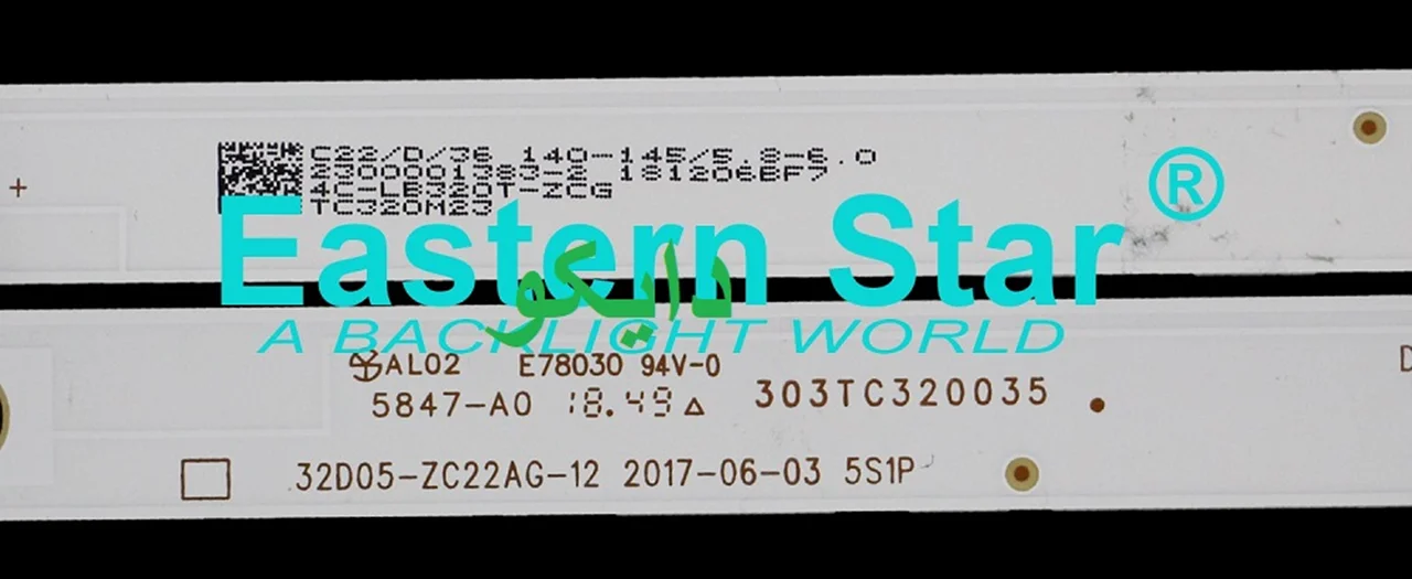 بک لایت تلویزیون تی سی ال 32d3000 دارای 2 ردیف بوده که هر خط 5 لامپ ال ای دی دارد . ولتاژ هر لامپ ال ای دی 6 ولت و طول آن 56.4 سانتی متر است .