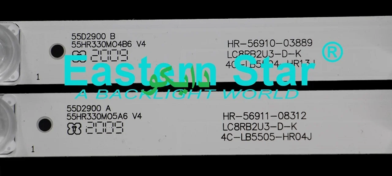 بک لایت تلویزیون تی سی ال 55d2900 دارای 4 ردیف یا 8 شاخه بوده که هر خط 9 لامپ ال ای دی دارد . ولتاژ هر لامپ ال ای دی 3 ولت و طول آن 95.8 سانتی متر است .