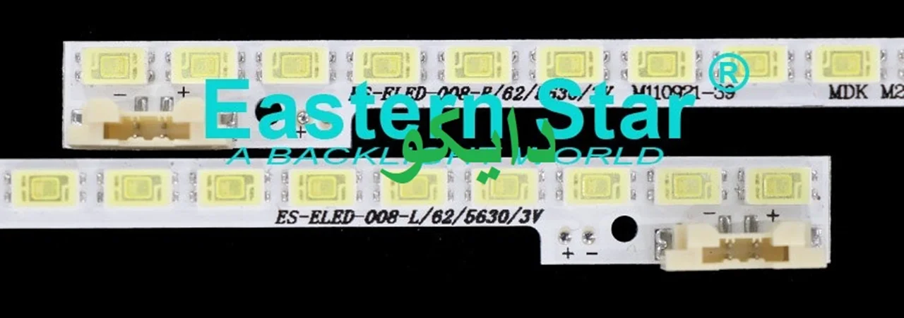 بک لایت تلویزیون سامسونگ 40d5950 - 40d5500 - 40d5550 - 40d5000 - 40d5540 - 40d5590 - 40d6920 - 40d دارای 1 ردیف 2 تایی بوده که هر خط 62 لامپ ال ای دی دارد . ولتاژ هر لامپ ال ای دی 3 ولت و طول هر ردیف 44 سانتی متر است .