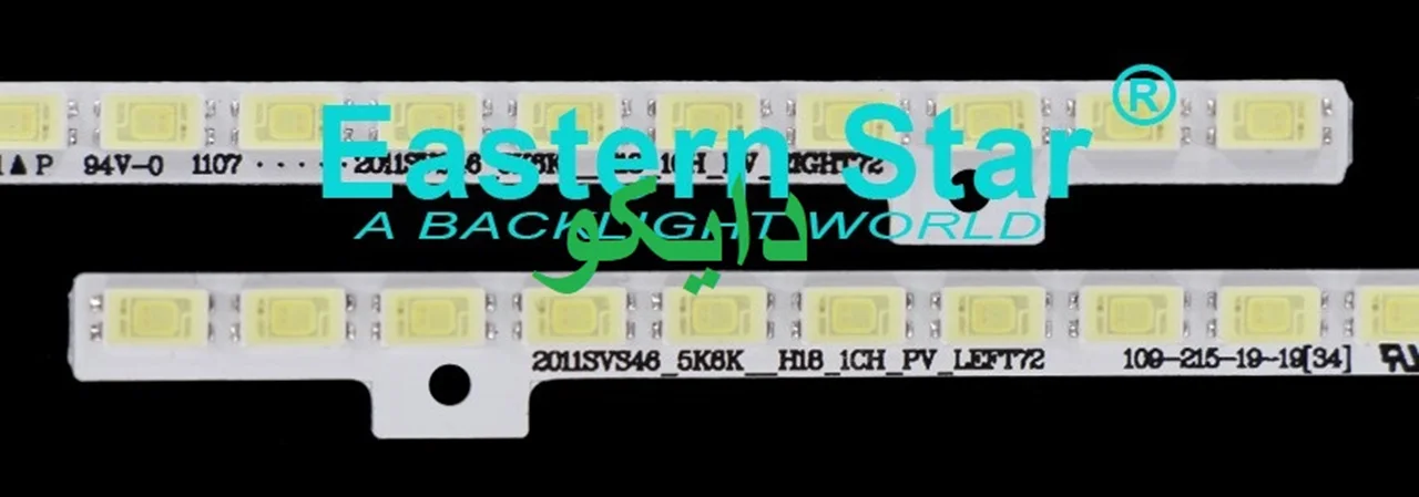 بک لایت تلویزیون سامسونگ 46d5500 - 46d5000 - 46d6000 - 46d5550 - 46d6920 - 46d5950 دارای 1 ردیف 2 تایی بوده که هر خط 72 لامپ ال ای دی دارد . ولتاژ هر لامپ ال ای دی 3 ولت و طول هر ردیف 50.9 سانتی متر است .