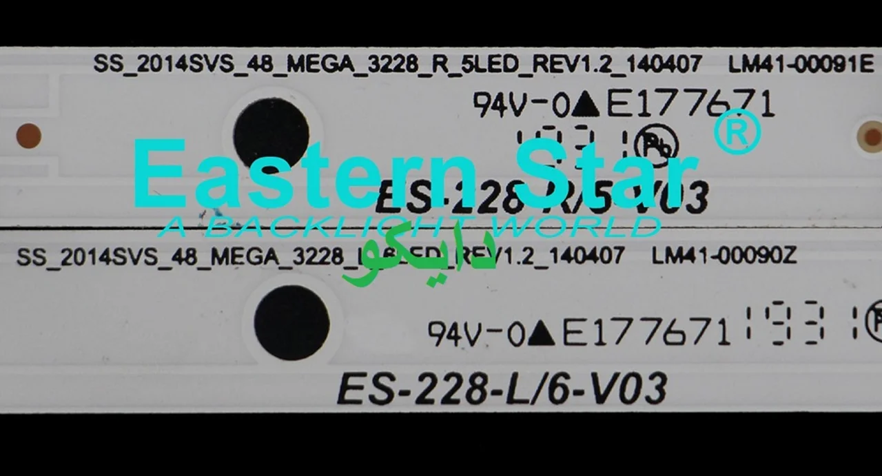 بک لایت تلویزیون سامسونگ 48h4860 - 48h4865 دارای 4 ردیف یا 8 شاخه است که هر خط 5 + 6 لامپ ال ای دی دارد . ولتاژ هر لامپ ال ای دی 3 ولت و طول آن 93.1 = 42.5 + 50.6 سانتی متر است .