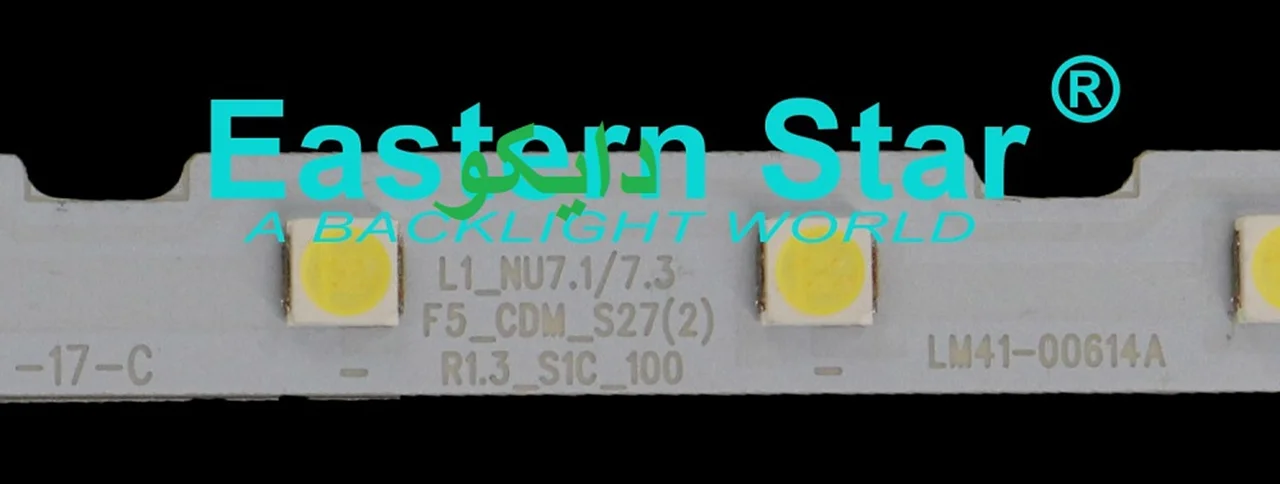 بک لایت تلویزیون سامسونگ 65nu7300 - 65nu7100 - 65nu دارای 2 ردیف بوده که هر ردیف 54 لامپ ال ای دی دارد . ولتاژ هر لامپ 6 ولت و طول هر ردیف آن 70.7 سانتی متر است .