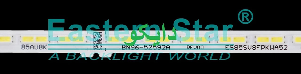 بک لایت تلویزیون سامسونگ 85au8000 - 85au8100 - 85au8070 - 85au8072 - 85au9000 - 85au9070 - 85au9072 دارای 4 ردیف بوده که هر ردیف 52 لامپ ال ای دی دارد . ولتاژ هر لامپ 3 ولت و طول هر ردیف آن 46.7 سانتی متر است .