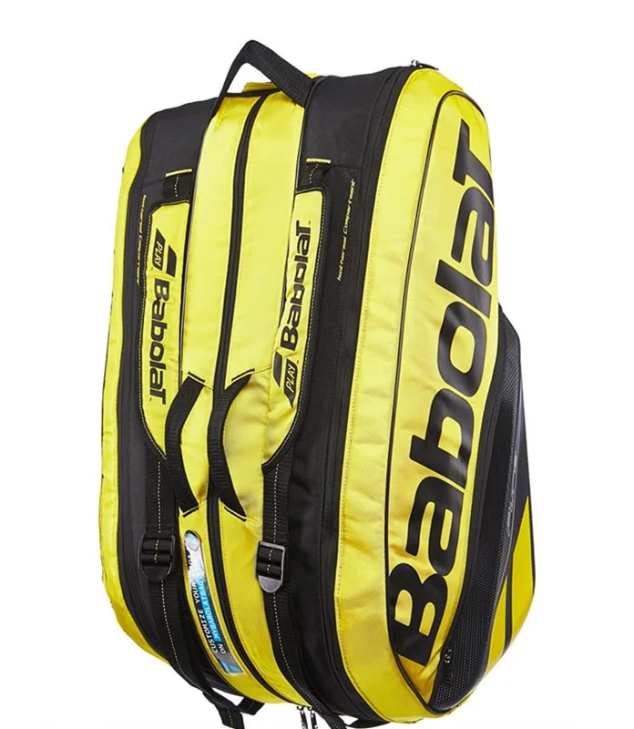 ساک تنیس بابولات ۱۲ راکت Pure Aero Bag انتخاب اول بازیکنان حرفهای می باشد و همراه آن میتوان تمام وسایل مورد نیاز را به زمین بازی ببرید . رنگهای زرد و مشکی این ساک با راکتهای سری پیور ایرو شرکت بابولات هماهنگ کامل دارد . این ساک از سه بخش اصلی تشکیل می شود که دو بخش آن دارای عایق حرارتی می باشد .