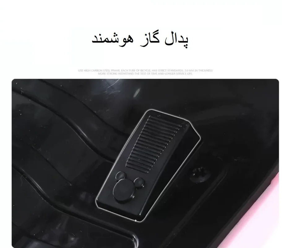 دو جای پا بغل موتور هست تا مانع از برخورد پای کودک به زمین شود . یک پدال زیر پای کودک وجود دارد تا با فشردن آن موتور حرکت کند . بر روی فلاپ جلو موتور شارژی کودک طرح خرگوش دکمه ای قرار دارد تا موتور را به جلو و عقب هدایت کند .