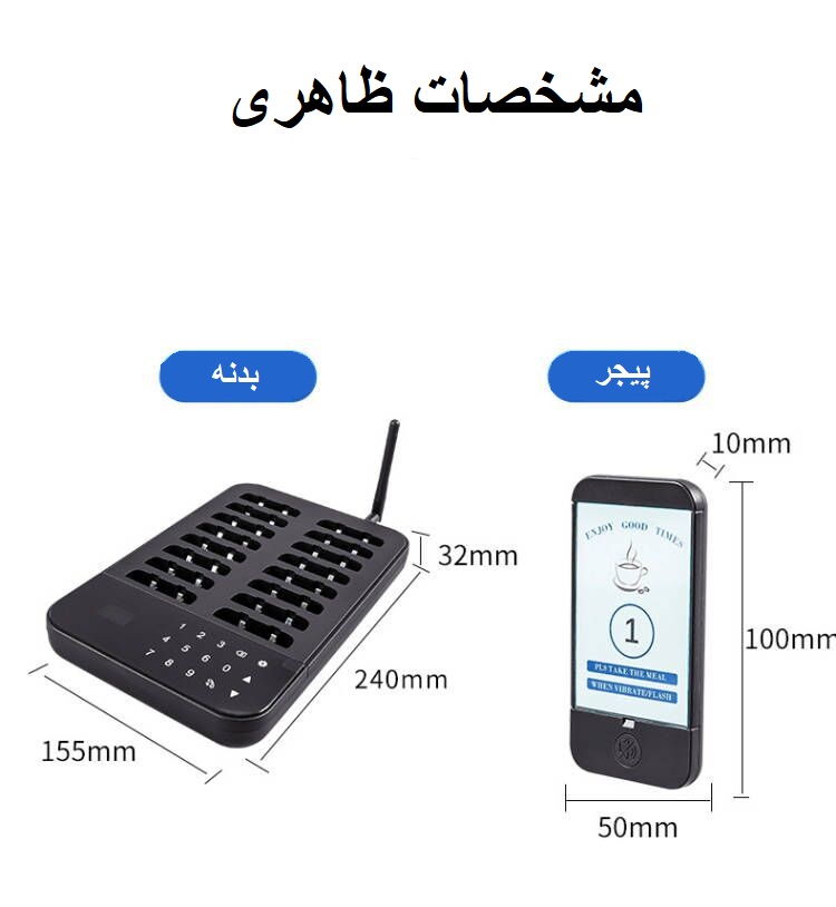 - بهداشت و برندینگ: روکش شفاف پیجر امکان قرار دادن کارت شماره با لوگو و رنگ سازمانی را می دهد. نظافت روزانه با دستمال بدون مواد خورنده توصیه می شود.