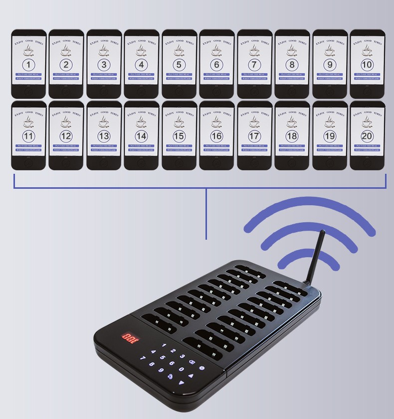- الگوی ثابت شماره گذاری: پیجر ها را به ترتیب 1 تا 20 نگه دارید تا توزیع و جمع آوری سریع تر شود.